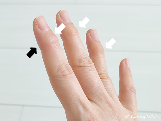 第一関節の膨らみはあんまり変わらずな気がします。そりゃそうでしょう、食事に少々気を付ける程度でテキトーなんですもの(;^_^A