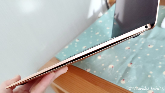 見てください、この綺麗なブルー。本体の質感も、Macですかい?な感じ。