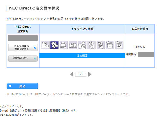 注文状況はNEC会員サイトのマイページから閲覧可能