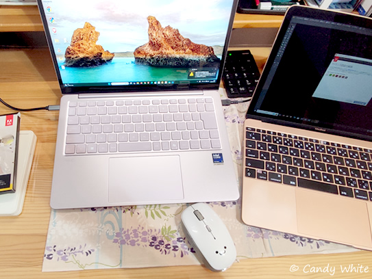 すぐ解除できるように、旧PCのMacbook(ブートキャンプWin10)を横に置いてます。